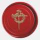Sticker Rond Sceau de cire rouge croix dorée de Jésus religieux