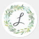 Utilisez ce design épuré avec une couronne de verdure à feuilles d'eucalyptus et une lettre monogramme L pour une variété d'occasions : sacs de faveur, scellés d'enveloppe, etc.