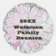 Personnalisez votre réunion de famille avec un autocollant de sceau d'enveloppe peu coûteux avec une fleur artistique en arrière-plan. La fleur affiche des couleurs rose et vert ainsi qu'un fond bleu clair. L'année et le nom de votre famille se détachent en grande police noire. Tout le texte est facilement personnalisable.
