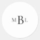 Autocollant rond blanc. Monogramme noir.