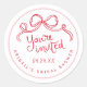 Sceau d'enveloppe de Fêtes des mariées personnalisées à la main dessinée en Whimsical. Affiché en rouge, blanc et rose, mais toutes les couleurs sont modifiables par vous. "Vous êtes invité" dans un script original et amusant. Personnalisez le modèle avec la date et le titre de votre événement. © Kimbellished, LLC