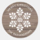 Cet autocollant personnalisé avec un arrière - plan en bois rustique et un flocon de neige blanc ajoute une atmosphère chaleureuse de Noël au courrier sortant.