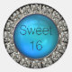 Élégant autocollant d'enveloppe d'invitation Sweet sixteen réalisé dans des graphiques d'un ton argenté et bleu turquoise bauble avec faux diamants, autour de l'extérieur. Personnalisez le texte noir, pour lire ce que vous voulez. Jolie touche de finition à notre Sweet sixteen Léopard de Neige Glam Invitations et enveloppes d'anniversaire.