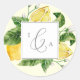 Ces enveloppes mariages modernes en monogramme jaune citron sont parfaites pour un mariage de printemps ou d'été. Le design méditerranéen rustique présente de beaux citrons aquarellés aux fleurs blanches bohème et d'élégants feuilles verts. Personnalisez ces autocollants avec les initiales de la mariée et du marié.
