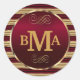 Sticker Rond Sceau d'enveloppe Monogramme rouge foncé et or
