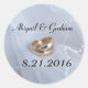 Ne léchez pas les enveloppes, scellez-les avec votre autocollant customisé. Utilisez ces autocollants pour sceller vos invitations, vos notes de remerciement ou vos cadeaux. Il présente l'image d'une paire de bandes mariages dorées sur un voile.