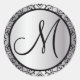Sticker Rond Sceau Mariage de découpe Damask noir et argent