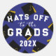 Joints d'enveloppe de graduation créative, la fête favorise les étiquettes ou des autocollants cadeau grad avec des bouchons de graduation noir et or sur arrière - plan bleu.