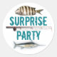 Autocollants pour une fête surprise sur le thème de la pêche, ou sceaux d'enveloppe, à utiliser avec nos invitations de fête pour adultes sur le thème de la pêche. (Ou changez le texte en "Vous êtes invité", ou "Fête d'anniversaire"). Le texte imprimé en bleu sarcelle est centré avec des images de poissons d'eau salée et une canne à pêche et un moulinet. Utilisez-les pour célébrer tout type d'occasion pour l'homme qui vit pour la pêche. Les autocollants ronds et carrés fonctionneront le mieux. Ils s'imprimeront comme vous les voyez, choisissez donc une forme correcte.