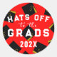 Scellés d'enveloppe de remise de diplômes créatifs, étiquettes de faveurs de fête ou autocollants de cadeau de diplômé avec des casquettes de graduation noires et dorées sur fond rouge d'école.