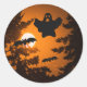 Sticker Rond Scène nocturne Éffrayante d'Halloween noir et oran