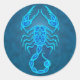 Ce symbole stylisé pour le signe zodiaque de Scorpio est décoré de lignes complexes et de motifs de points. Le design élaboré comprend un scorpion agressif avec ses pinces qui s’élèvent vers le haut et la queue qui s’écoule sous le sol. Cet autocollant bleu magnifique est une belle et élégante façon de montrer votre signe astrologique.