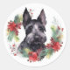 Sticker Rond Scottish Terrier Christmas Wreath Festive Pup