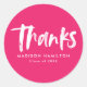 Scellez vos enveloppes de cartes de remerciements de graduation personnalisées merci les autocollants! "Thanks" est affiché en lettres peintes en blanc avec un arrière - plan rose chaud ou la couleur de votre choix. Personnalisez l'obtention du diplôme rose chaud merci les autocollants en ajoutant le nom du diplômé et l'année de diplôme.