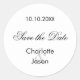 Un autocollant Enregistrer la date pour votre mariage. Un arrière - plan blanc élégant, du texte noir. Personnalisez et ajoutez vos noms et votre date de mariage.