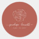 Script minimal Mariage d'art floral | Sticker rond classique en terre cuite
