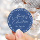 Sticker Rond Script moderne bleu Joyeux Noël Gite Cadeau
