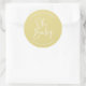 Faites de votre baby shower un accessoire spécial grâce au Sticker rond moderne Script jaune Oh Baby Simple Douche Favor Classic ! Ce charmant autocollant ajoute une touche douce et simple à vos festivités de baby shower. Que vous les utilisiez sur des sacs de faveur, des cartes de remerciement ou ailleurs, ces autocollants créent un look cohésif et surélevé que les clients aimeront. La couleur jaune classique et l'élégante police de script lui donnent une ambiance intemporelle et sophistiquée, parfaite pour n'importe quel thème de baby shower.