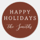 Ajoutez une touche chaleureuse à votre saison de vacances avec ces autocollants! Doté de "happy holiday" en police serif blanche élégante et de votre nom de famille en calligraphie blanche chic, cet autocollant est parfait pour ajouter une touche personnelle aux cadeaux, enveloppes ou cartes de fin de année. Utilisez-le pour sceller des colis, décorer des sacs-cadeaux ou même comme étiquette festif pour des gâteries maison. Cet autocollant polyvalent ajoute une touche de charme et d'élégance à tous vos préparatifs de vacances. Nous avons choisi d'utiliser une couleur rouge festive pour l'arrière - plan, mais vous pouvez changer cela à n'importe quelle couleur de votre choix en utilisant l'outil de design de Zazzle. Découvrez la collection pour les articles correspondants, ou parcourez notre magasin pour des modèles d'autocollants de Noël plus uniques.