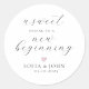 Écriture moderne "une douce fin à un nouveau début" Mariage préférez les étiquettes personnalisés avec les noms de mariés et la date de mariage pour vous remercier de la barre de biscuits buffet.