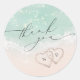 Sticker Rond Script moderne Sand Hearts Plage Mariage Merci