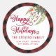 Sticker Rond Script plaid moderne Happy Holidays rouge saint