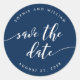 Stylish Save the Date sticker avec les mots "Save the Date" dans un script de relaxation cursive en blanc contre une couleur arrière - plan modifiable (cliquez sur personnaliser pour accéder). Personnalisez-le en remplaçant le texte de l'espace réservé. Pour plus d'options comme changer la police et sa taille/couleur, développer la courbe /contrat ou l'espacement entre les lettres cliquez sur le bouton "Personnaliser". *Veuillez noter que le filigrane Zazzle qui apparaît dans l'aperçu du zoom n'apparaîtra PAS sur le produit imprimé final. © Bois de rose et agrumes