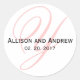 Simple, élégant, Blush Pink et White Script Monogram Wedding Favor Sticker ou Enregistrer le sceau de l'enveloppe Date. Par Elke Clarke©2009. Customisez avec votre nom de famille initial et les noms de mariée et de mariée et la date du mariage. Utilisez pour sceller vos enveloppes de faire-part de mariage ou ajouter à vos faveurs de mariage. Utilisez le menu d'édition "customiser" pour fixer l'espacement si vous changez la lettre.
