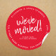 Rouge Blanc Rustique Script Nous avons déplacé Nouvelle Adresse Classic Round Sticker