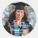 Sticker rond Classique Simple Script Photo Graduate. Ce modèle photo moderne pour remise de diplômes est parfait pour remercier vos invités et envelopper vos cadeaux de fête avec une touche unique