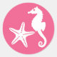 Sticker Rond Seahorse & Starfish, Fuchsia rose et blanc