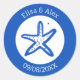 Sticker Rond Seashell Beach Wedding Bleu Blanc CUSTOM