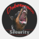 Un noir Dobermann Pinscher menaçant avec le texte "Dobermann Security" sur un autocollant. Mettez-les sur votre voiture ou vos objets personnels pour garder les gens loin!