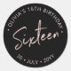 Sticker Rond Seize Roses or & Black Sweet 16 Anniversaire