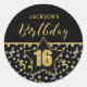 Sticker Rond Seizième anniversaire Confetti noir et or