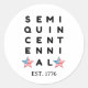 A meaningful sticker for history lovers, educators, veterans, families, and proud Americans marking this once-in-a-lifetime milestone. The design shows bold black typography of the word SEMIQUINCENTENNIAL spread over five lines with two USA stars on the last line. There is CUSTOMIZABLE TEXT which currently reads EST. 1776, which you can PERSONALIZE with your name, family, or other line of text. Also available in navy.