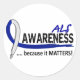 Voir tous nos modèles exclusifs de sensibilisation ALS TOUS AFFICHÉS SUR UNE PAGE en visitant la section ALS de notre boutique Zazzle, Faites une différence dans la lutte contre la ALS en livrant le message important de sensibilisation à tous autour de vous avec la sensibilisation à la SLA Parce que cela compte t-shirts, vêtements, boutons et cadeaux avec un design simple, des polices de texte contrastées, et un ruban de sensibilisation à la SLA bleu et blanc "souligner" le mot AWARENSE. En tant que survivants du cancer, conjoints et fervents défenseurs de la sensibilisation, nous sommes heureux de contribuer à de nombreux organismes de recherche médicale ainsi qu'aux efforts de sauvetage des animaux et de Sauvons le Darfour et vous demandez de penser à nous d'abord pour tous vos besoins de sensibilisation et de soutien à la SLA.