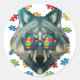 Sticker Rond Sensibilisation sur l'autisme Wolf Puzzle Lunettes