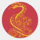Élevez vos festivités de l'Année du serpent avec cet autocollant rond saisissant, qui présente un serpent doré radieux orné de motifs floraux délicats. Conçu avec un arrière - plan rouge vif, le design allie harmonieusement charme traditionnel et modernité. Parfait pour ajouter une floraison festive aux enveloppes, aux cadeaux ou aux faveurs de fête, il incarne des thèmes de prospérité et de bonne fortune. Les détails ornés du corps du serpent reflètent la chaleur symbolique et l’espoir pour la nouvelle année, faisant de cet autocollant un ajout mémorable à toute célébration.