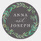 Scellez vos enveloppes d'invitation ou faveurs avec ces élégants autocollants de mariage botanique d'hiver avec vos noms encadrés par un feuillage d'aquarelle luxuriante dans les tons verts, sur un arrière - plan riche de couleur terre. Coordonnées avec notre collection de mariages de serre.