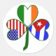 Autocollant rond classique avec un shamrock dispose d'un drapeau dans chaque feuille. Les États-Unis, l'Irlande et Cuba sont tous représentés. Idéal pour célébrer la Saint Patrick, le 4 juillet et les fêtes cubaines.