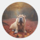 Sticker Rond Shar Pei dans l'automne Feuilles automne Inspire