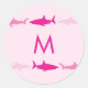 Sticker Rond Sharks roses mignonette Nom de l'enfant Enveloppe