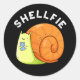 Sticker Rond Shellfie Funky Snail Selfie Pun Dark BG