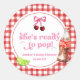 Sticker Rond She's Ready To Pop! Cherry Soda Pop Baby Shower