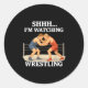 Sticker Rond Shhh I'm Watching Wrestling Funny Wrestling Lover