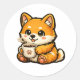 Sticker Rond Shiba Inu mignon avec café – Illustration de chien