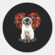 Sticker Rond Siamese Cat Lover Floral Heart Valentines Day