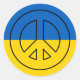 Des autocollants ronds avec le drapeau de l'Ukraine et un symbole de paix