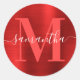 Créez votre propre nom personnalisé et des autocollants monogrammés d'enveloppe pour son événement spécial. Graphique en fausse feuille d'art numérique couleur dégradé de rubis brillant. Monogramme contemporain rouge et blanc avec design de calligraphie de style signature élégant sur un autocollant rond classique.